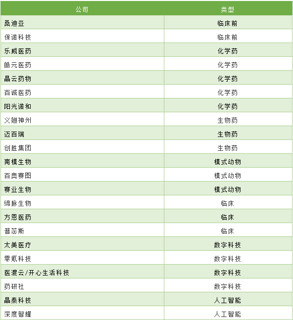 点评:人工智能在人们日常生活和很多工业领域已经大规模应用了,包括医疗领域已经出现了上百家AI+影像学相关初创企业。但是在生物医药行业还是新鲜事,国内只是在过去两三年才开始兴起,目前也就是十几家公司,也都处于早期阶段。当然,即使是在领先一步的欧美,也还没有一个成功案例,这是新药研发漫长周期所决定的。