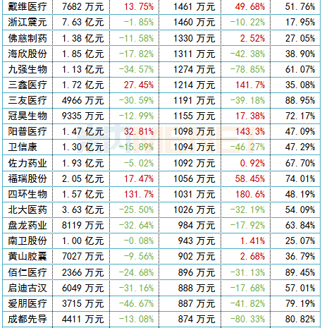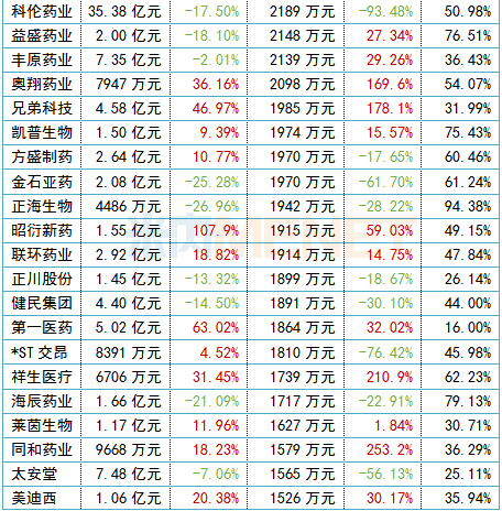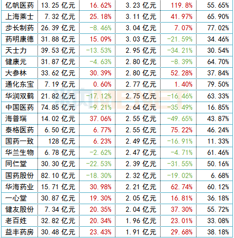 净利润TOP10药企中,恒瑞医药、迈瑞医疗、华东医药等6家超过10亿元。其中,恒瑞医药以13.15亿元位居首位;誉衡药业增速最快,高达670.4%。