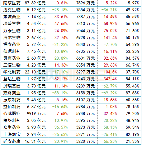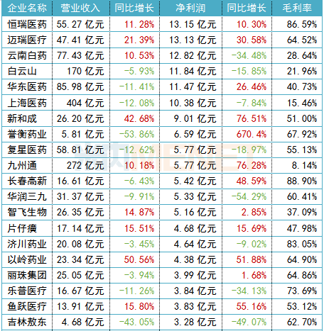 净利润TOP10:恒瑞医药、迈瑞医疗、华东医药等6家超10亿