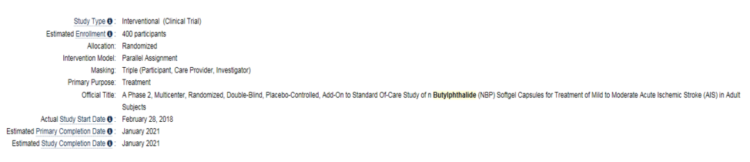 此外,丁苯酞软胶囊用于治疗缺血性脑卒中的临床试验在美国已进入Ⅱ期。
