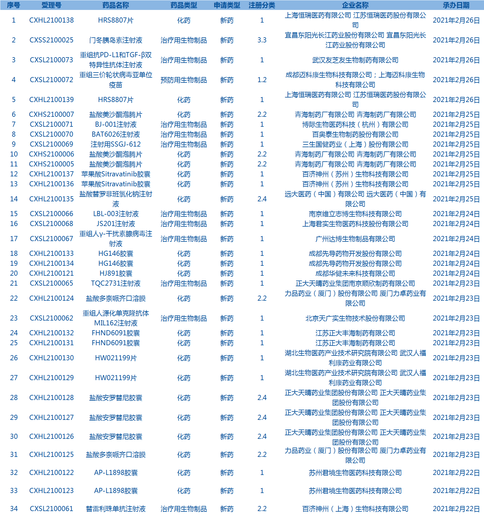 7.CDE承办受理34个新药上市申请,包括门冬胰岛素注射液等药品(截至2月28日)。