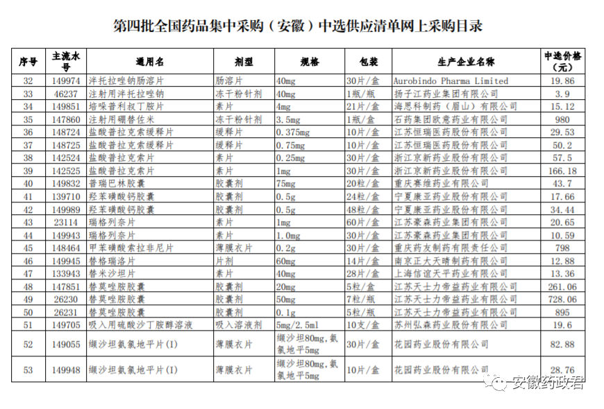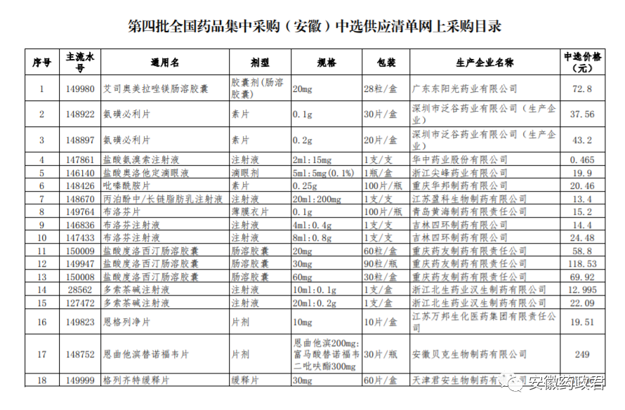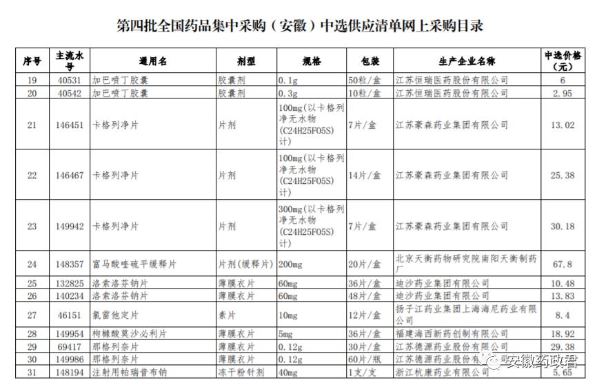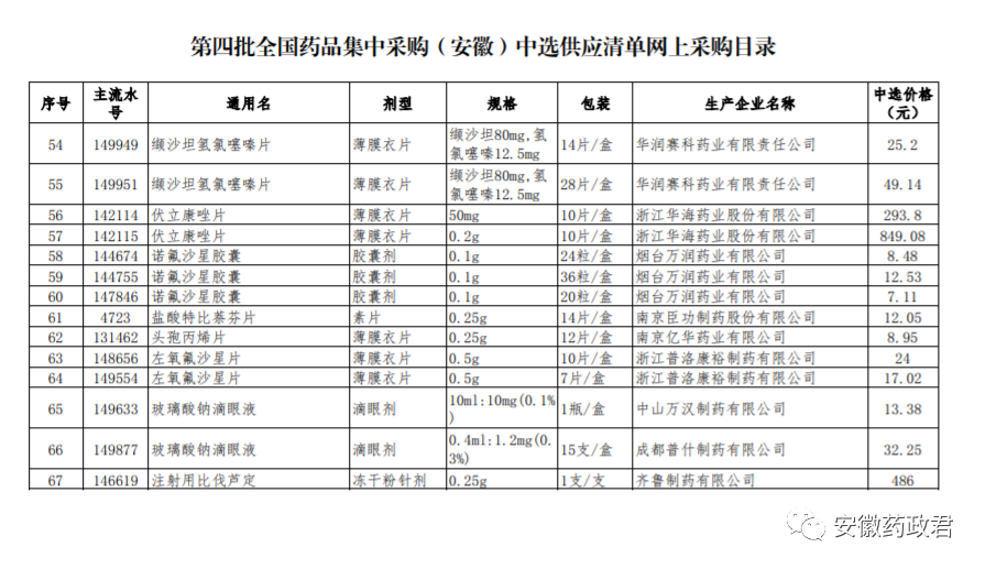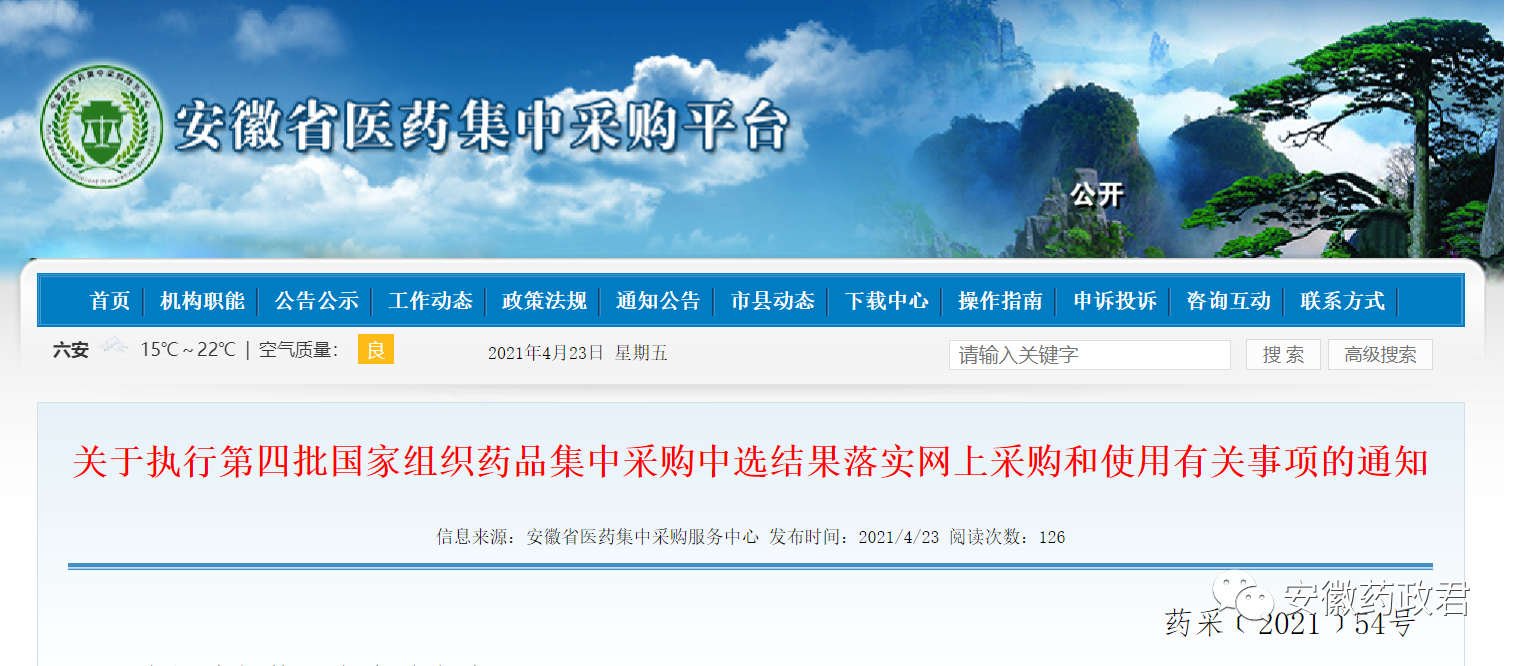 五、按照《安徽省医疗保障局关于做好第四批国家组织药品集中采购中选结果落地实施相关工作的通知》(皖医保秘﹝2021﹞43号)文件规定,全省5月9日统一实施,各医疗机构及相关企业按本通知要求切实做好中选药品网上集中采购相关准备工作。
