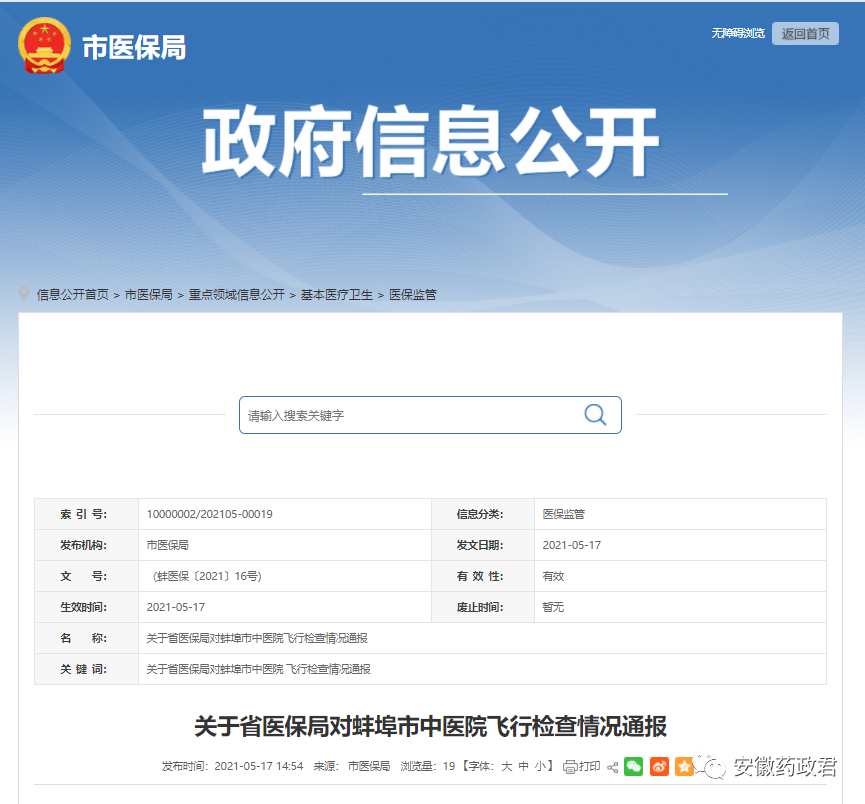 2020年9月15至16日,省医保局飞行检查蚌埠市中医院2018年1月1日至2020年5月31日期间医保政策执行情况,并现场移交问题线索。市医保局根据飞行检查移交线索,组织人员对移交线索进行核查,现将检查认定违规行为和处理情况通报如下: