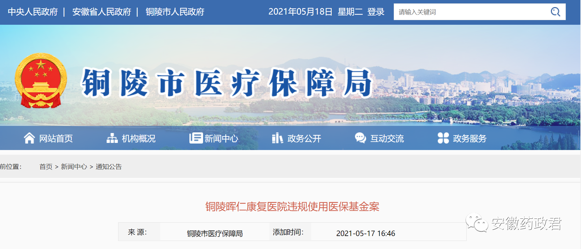 铜陵市医保局依据《安徽省基本医疗保险监督管理暂行办法》《铜陵市定点医疗机构服务协议》,对该定点医疗机构作出处理如下: 1.追回违规使用的医保基金55505.28元,对违规收取关节粘连传统松解术、低标准住院、分解住院等违规行为,扣除2倍违约金109460.79元; 2.责令该院立即整改并约谈相关责任人。