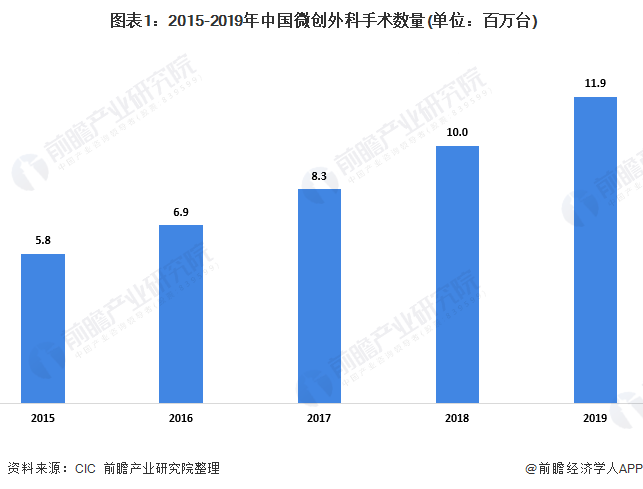 据前瞻网数据了解:中国每百万人口接受微创外科手术的数量及微创外科手术的渗透率分别从2015年的4248台及28.5%增至2019年的8514台及38.1%。然而,相较美国,中国的微创外科手术渗透率仍然很低。