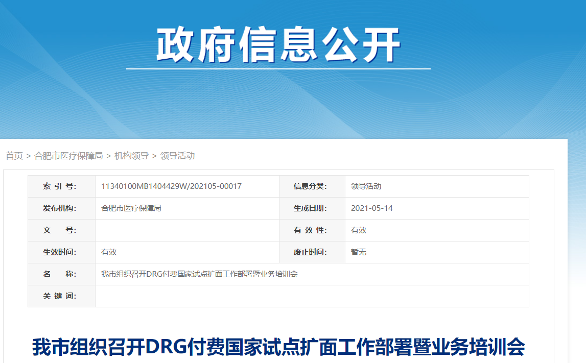 合肥市组织召开DRG付费国家试点扩面工作部署