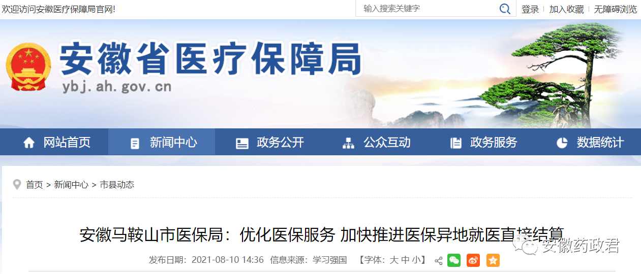 2021年8月,安徽省马鞍山市医保局将优化医保服务作为深化医保制度改革、保障民生需求的“重要实事”,加快推进医保异地就医直接结算。