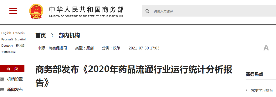日前,商务部发布《2020年药品流通行业运行统计分析报告》,其中对于中医药的数据,我们为大家整理好了,下面就快来看看吧!