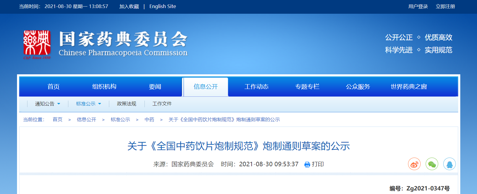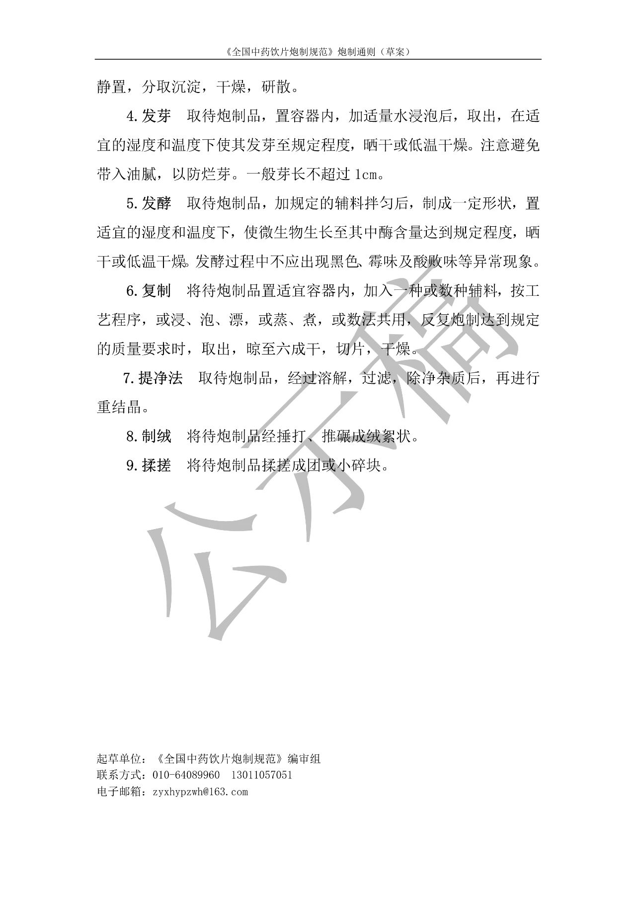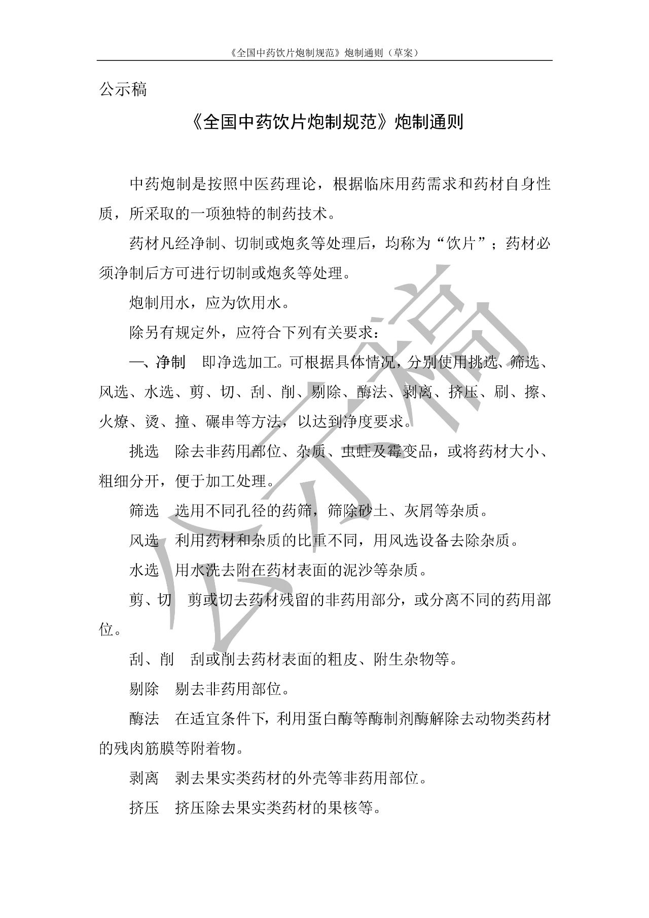 按照《全国中药饮片炮制规范》编制工作的要求,现将拟收载的《全国中药饮片炮制规范》炮制通则草案予以公示,征求社会各界意见(详见附件)。公示期自发布之日起3个月。请认真研核,若有异议,请及时来函提交反馈意见,并附相关说明、实验数据和联系方式。相关单位来函需加盖公章,个人来函需本人签名,同时将电子版发送至指定邮箱。
