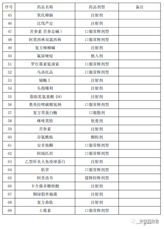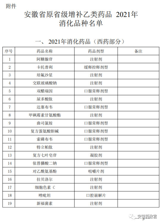 附件:安徽省原省级增补乙类药品2021年消化品种名单