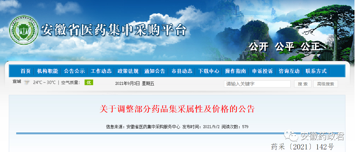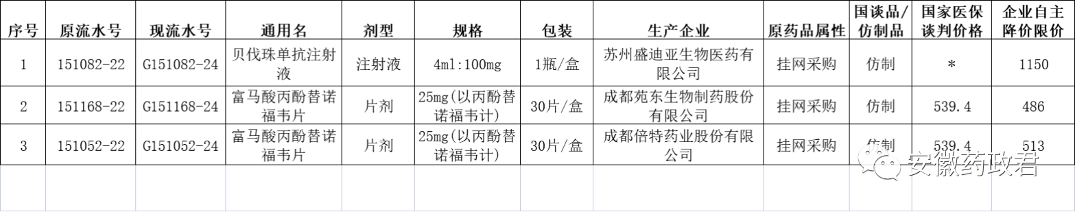 依据国家医保局 人力资源社会保障部《关于印发〈国家基本医疗保险、工伤保险和生育保险药品目录(2020年)〉的通知》(医保发〔2020〕53号)、省医疗保障局 省人力资源和社会保障厅《关于执行〈国家基本医疗保险、工伤保险和生育保险药品目录(2020年)〉的通知》(皖医保秘〔2021〕13号)及省医疗保障局《关于做好协议期内国家谈判准入药品同通用名药品医保支付工作的通知》(皖医保秘〔2021〕16号)要求,为规范医保谈判药品网上集中采购,依据药品生产/代理企业申请,现将相关药品由“挂网采购药品”统一调整为“国家医保谈判药品”(详见附件),并以“国家医保谈判价格”或“省医保支付标准”为集采限价。个别企业在“国家医保谈判价格”基础上以全国最低集采价降价的,以企业自主降价限价,请各医疗机构及时调整目录及价格。