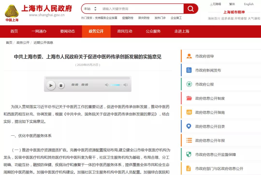 5月25日,上海发布《关于促进中医药传承创新发展的实施意见》(以下简称《意见》)。