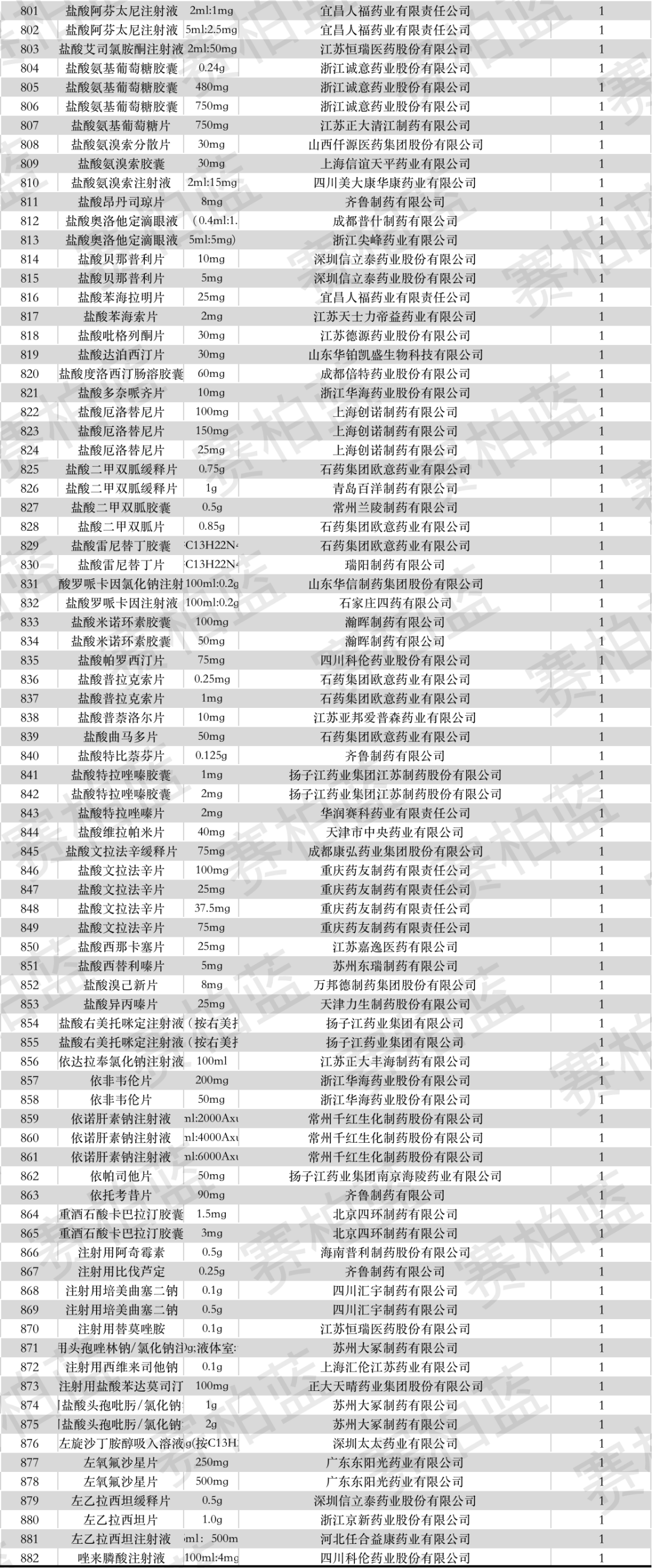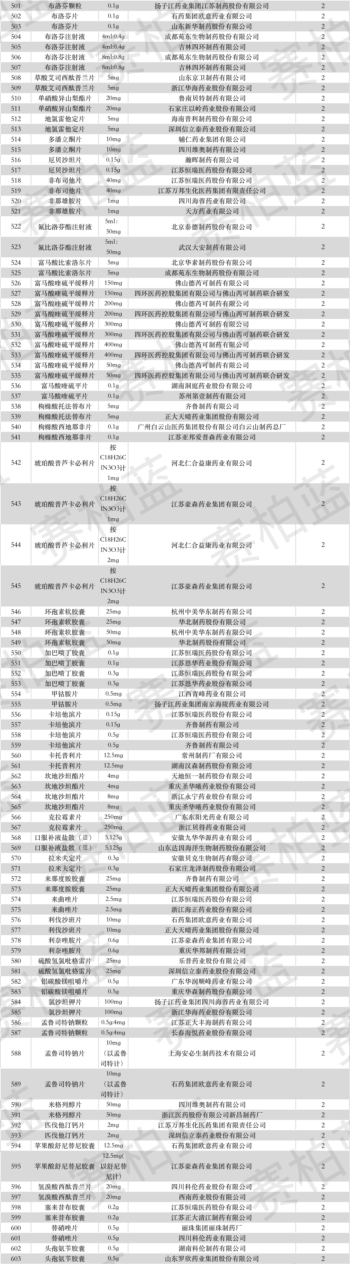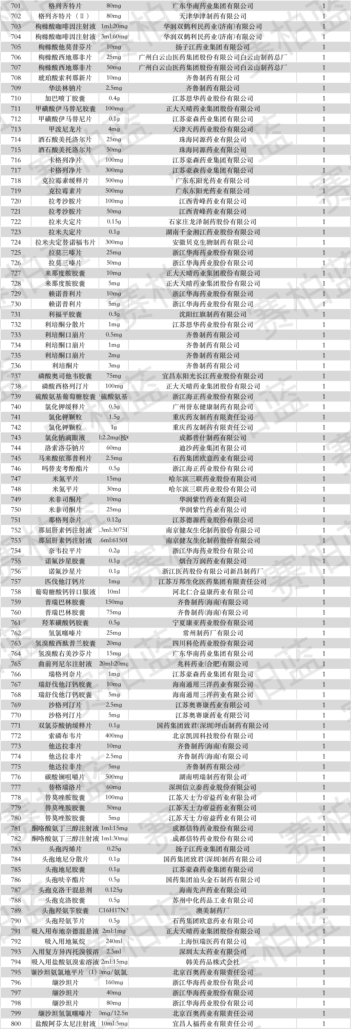下附过一致性评价全部名单