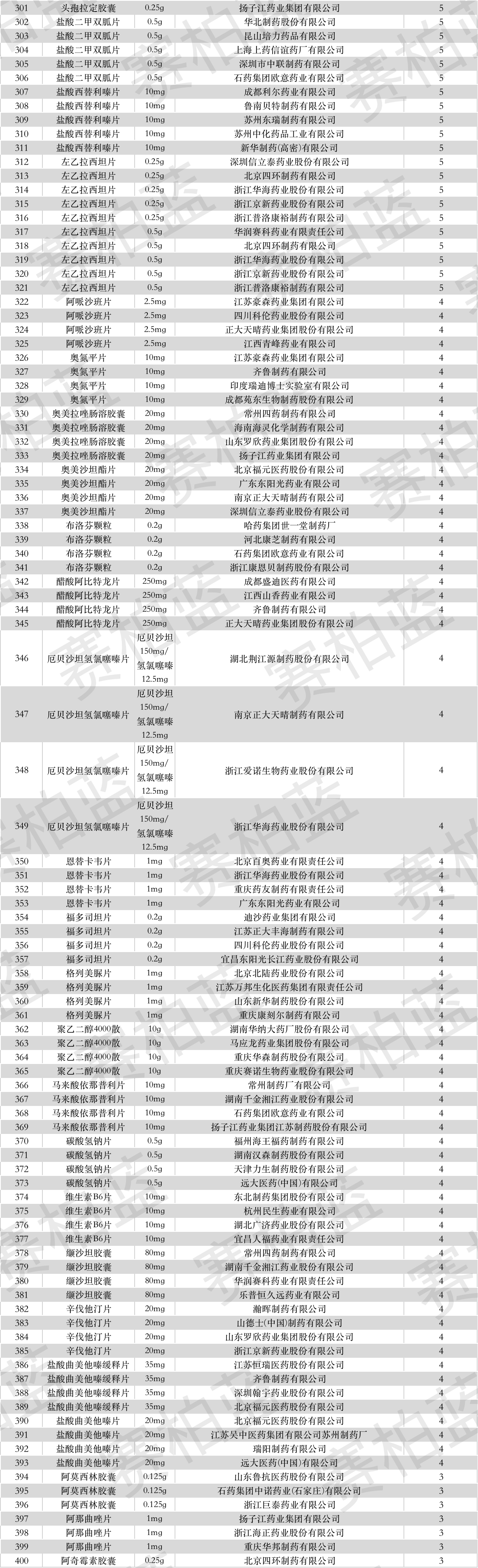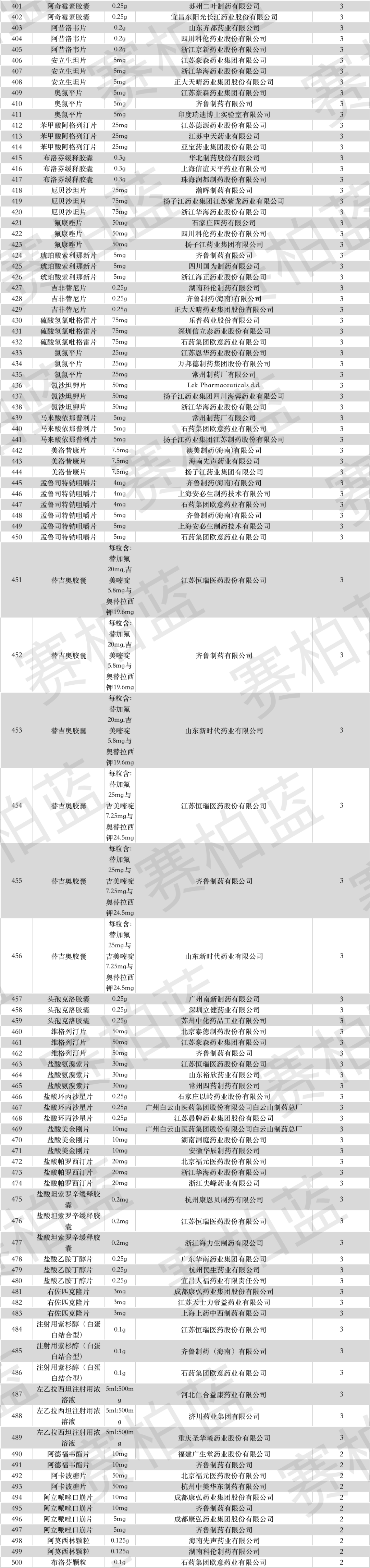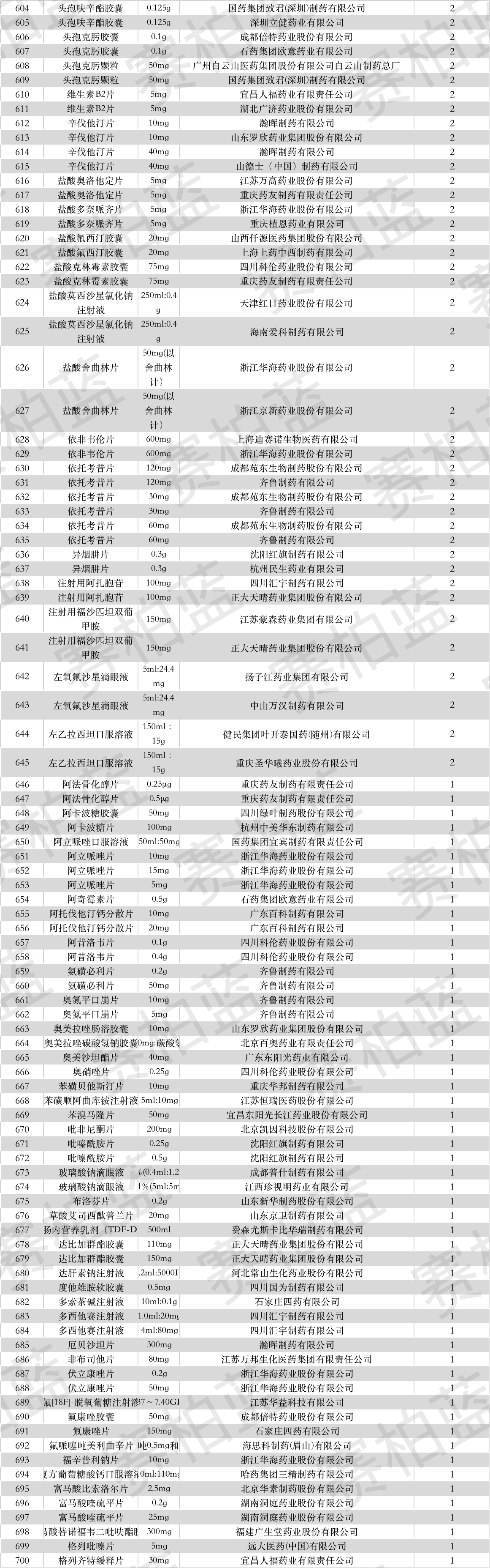 下附过一致性评价全部名单