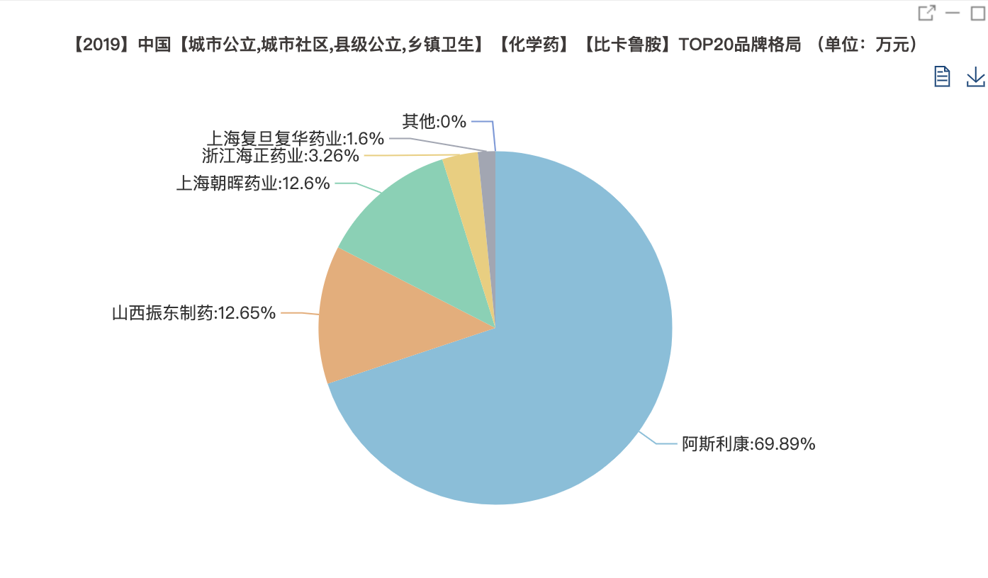 此外,2019年中国城市公立医院、县级公立医院、城市社区中心以及乡镇卫生院(简称中国公立医疗机构)终端比卡鲁胺销售额为15.25亿元。
