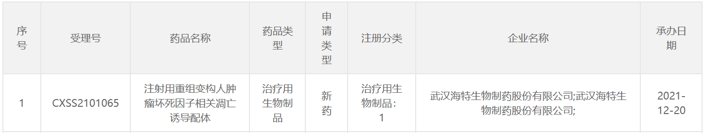 中国国家药监局药品审评中心(CDE)最新公示,海特生物在中国递交了1类生物新药“注射用重组变构人肿瘤坏死因子相关凋亡诱导配体”(以下简称CPT)的上市申请,并获得受理。根据海特生物公告,这是一款重组蛋白类靶向抗肿瘤新药,拟应用于血液系统肿瘤、胃癌、结肠癌、乳腺癌等恶性肿瘤的治疗,本次注册申请的适应症为多发性骨髓瘤。
