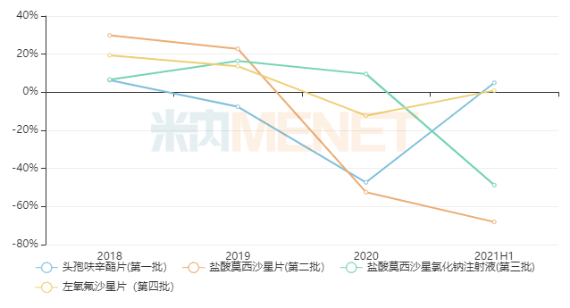 图3:前四批纳入国采的产品近几年的增速情况
