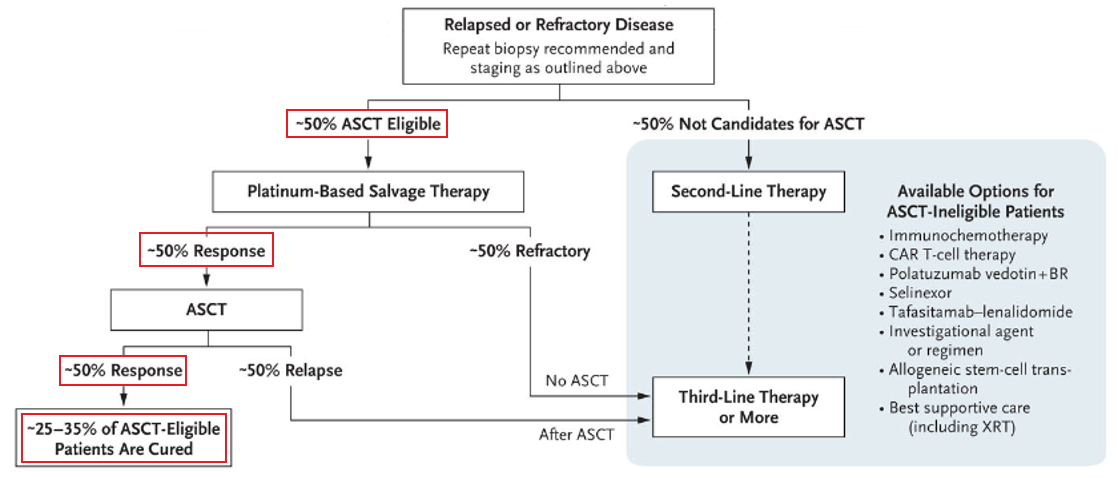 对照组:3个周期的挽救化疗后达到CR/PR患者序贯HDT-ASCT(第6周时PET-CT评估缓解不充分的患者可更换挽救化疗方案)