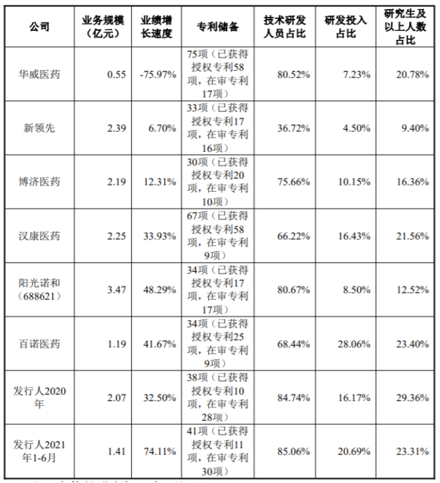 截至2021年6月30日,百诚医药主持或参与了国家级、省级及市级研发项目,实现包括11项发明专利、30项有效在审发明专利在内的共计41项专利储备,软件著作权达到22项,已经立项的自主研发项目超过 100 项。