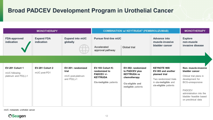 早在2019年12月,Padcev就获得了美国FDA加速批准用于先前已接受一种PD-(L)1抑制剂、并且在新辅助/辅助治疗或在局部晚期或转移性疾病治疗中已接受了一种含铂化疗方案的局部晚期或转移性尿路上皮癌成人患者。2021年2月,安斯泰来与西雅图遗传学公司向美国FDA提交了2份补充生物制品许可申请,其中一份也是基于EV-301试验的数据,旨在将Padcev由加速批准转变为常规批准。