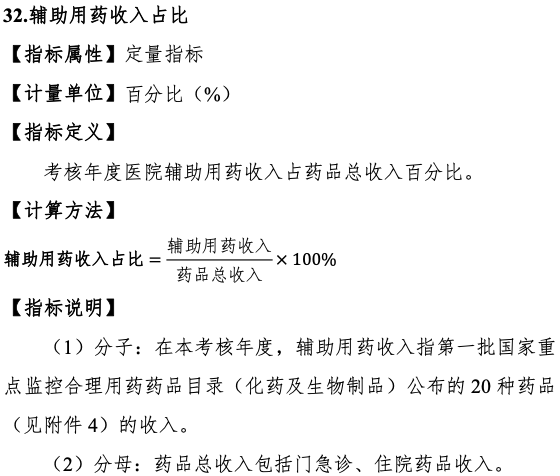 从国家卫健委发布的二级、三级医院公立医院绩效考核操作手册(2020年版)来看,都提到药品收入占比的要求。《国家二级公立医院绩效考核操作手册(2020版)》要求,二级医院要统计“重点监控药品收入占比”:《国家三级公立医院绩效考核操作手册(2020版)》要求,三级医院要统计“辅助用药收入占比”:虽然一个是重点监控药品,一个是辅助用药,但其实这两个统计的内容是一样的,都是针对各省在第一批国家重点监控合理用药药品目录基础上,制定的省级重点监控合理用药药品目录。从这一点看,不同省份的医院绩效考核统计的品种范围可能就不一样了。2019年7月1日,国家卫健委正式发布《第一批国家重点监控合理用药药品目录(化药及生物制品)》。根据通知,为贯彻落实国务院办公厅《关于加强三级公立医院绩效考核工作的意见》和国家卫生健康委《关于做好辅助用药临床应用管理有关工作的通知》,国家卫生健康委会同国家中医药局在各地报送的省级推荐目录基础上,形成了第一批国家重点监控目录。通过以上内容我们可以发现,第一批国家重点监控目录与辅助用药目录有一定的联系,但是并不等同于辅助用药目录。根据米内网数据库显示,这20个品种2018年在中国公立医院的销售额合计高达652.8亿元。但第一批国家重点监控目录是在2019年7月才正式出台,2019年这些品种市场规模能去到多少还不好说。此外,根据国务院2019年11月15日发布的《国务院深化医药卫生体制改革领导小组关于进一步推广福建省和三明市深化医药卫生体制改革经验的通知》,明确要求2019年12月底前,各省份要制定出台省级重点监控合理用药药品目录(化药及生物制品)并公布,2020年12月底前全面建立重点药品监控机制。从这一点看,各省出台重点监控目录的时间不一,统计出来的重点监控药品/辅助用药收入占比的情况估计也会有所差异。但有一点值得大家重视,国家加强辅助用药临床应用管理,是落实深化医药卫生体制改革任务、控制公立医院医疗费用不合理增长的明确要求,也是减轻患者看病就医负担、维护人民健康权益的重要举措。这个要求不是暂时的,而是以后都会这样严抓下去,严控合理用药和医保控费。国家卫生健康委也在发布《第一批国家重点监控合理用药药品目录(化药及生物制品)》时表示,将会同国家中医药局对《目录》进行动态调整。同是6月9日,国家卫健委发布《关于做好新形势下抗菌药物临床应用管理工作的通知(征求意见稿)公开征求意见的公告》。意见稿从优化抗菌药物供应目录、加强重点环节管理等多个方面,持续推进抗菌药物合理使用。优化抗菌药物供应目录方面,要求医疗机构要结合以基本药物为主导的“1+X”用药模式(“1”为国家基本药物目录,“X”为非基本药物),优化抗菌药物供应目录。制订本机构抗菌药物供应目录和处方集时,除按规定保证品种规格数以外,遴选同类药物时应当选用安全、有效、经济和循证证据充分的品种。加强重点环节管理方面,要持续推进重点抗菌药物专档管理,重点关注预防性使用、联合使用和静脉输注、鞘内注射、关节注射抗菌药物的情况。鼓励有条件的医疗机构开展重点抗菌药物的治疗药物浓度监测,指导临床精准用药。也就是说,除了上述重点监控目录,未来每一家医院都要遴选本院的抗菌药供应目录,进入这个目录对于抗菌药来说非常重要,尤其是注射剂型的抗菌药。