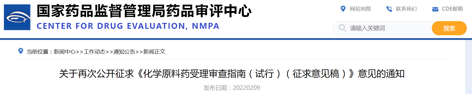 2月9日,CDE官网发布公告称,为贯彻实施新修订的《药品管理法》和《药品注册管理办法》,加快落实药品审评审批制度改革要求,中心结合最新政策法规要求对《化学原料药受理审查指南(试行)(征求意见稿)》进行修订,现在中心网站予以公示,以广泛听取各界意见和建议。欢迎各界提出宝贵意见和建议,并请及时反馈。公示日期为:2022年2月9日~2022年2月23日。