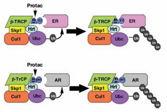 图22. AR和ER泛素化的示意图,来源:Kathleen M. Sakamoto, Kyung B. Kim, Rati Verma, Andy Ransick, Bernd Stein, Craig M. Crews, Raymond J.Deshaies,Development of Protacs to Target Cancer-promoting Proteins for Ubiquitination and Degradation