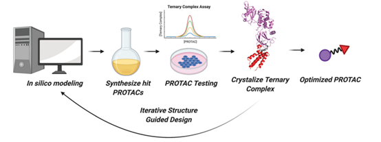目前PROTAC设计日臻完善(图9),干实验与湿实验结合,借助计算机模拟、药效实验数据以及复合物结构信息有效地挖掘小分子化合物库,并不断优化药物。