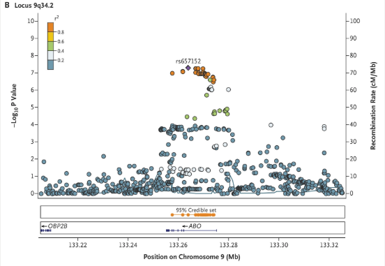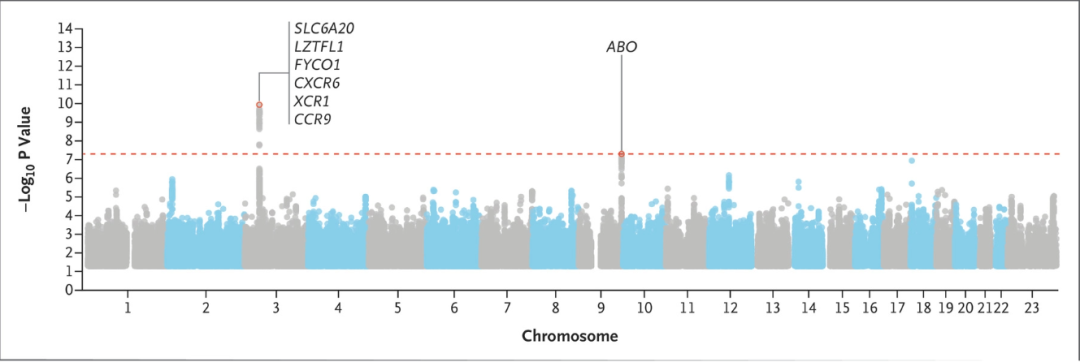 今日,《新英格兰医学杂志》刊登了一项新研究[1],科学家们对来自西班牙和意大利的近两千名重症新冠患者进行了全基因组关联研究(GWAS),分析了超过八百万个SNPs,确定了一个新的风险基因座,并发现血型与发生新冠导致的呼吸衰竭的风险竟然具有很强的相关性。