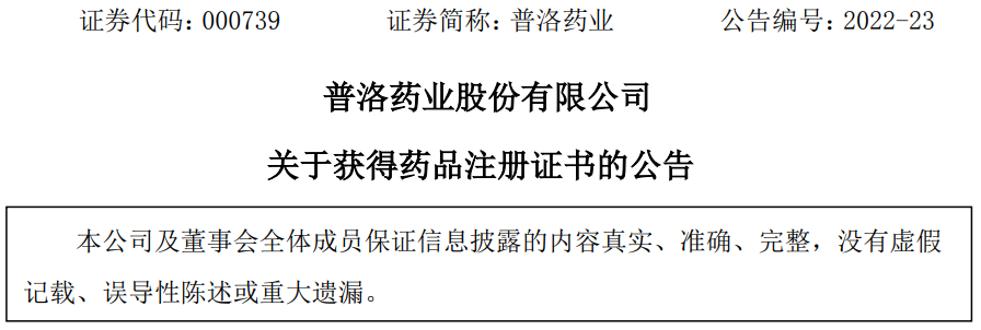 4月14日,普洛药业发布公告称,其全资子公司巨泰药业收到国家药监局核准签发的关于注射用氟氯西林钠的《药品注册证书》。