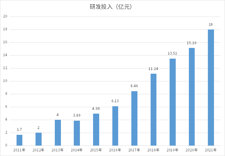 十年来,科伦药业在创新研发上的投入持续加码。数据显示,2012-2021年,公司年研发投入从2亿元增加到了18亿元,十年增长了8倍,足见科伦对于创新转型的重视。