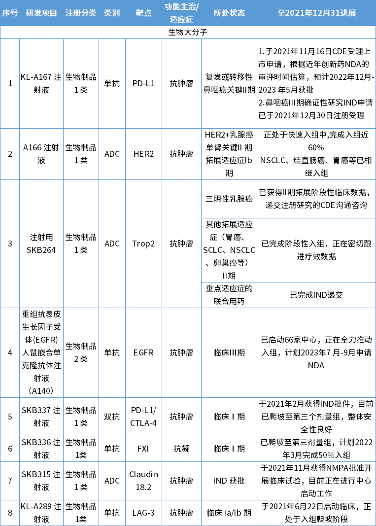科伦药业在研大分子新药研发管线(来源:科伦药业年报)