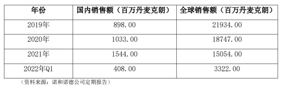 根据国际糖尿病联盟(IDF)发布的全球糖尿病地图(第10版)显示,2021年20-79岁的成年人中有5.37亿糖尿病患者,相当于每10个人中就有1个糖尿病患者。目前,我国仍是糖尿病患者人数最多的国家,2021年20-79岁的成年人中糖尿病患者已达1.4亿人。近年来,GLP-1受体激动剂在糖尿病治疗中的地位日渐攀升,市场迅速扩容,诺和诺德的利拉鲁肽注射液(Victoza)销售数据见下表。