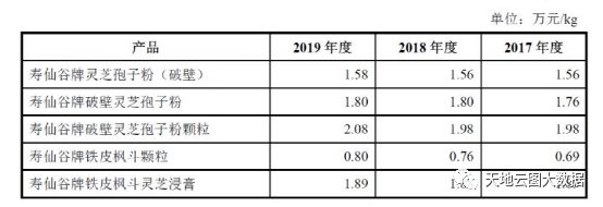 表1:2017-2019年寿仙谷主要产品销售价格变化情况