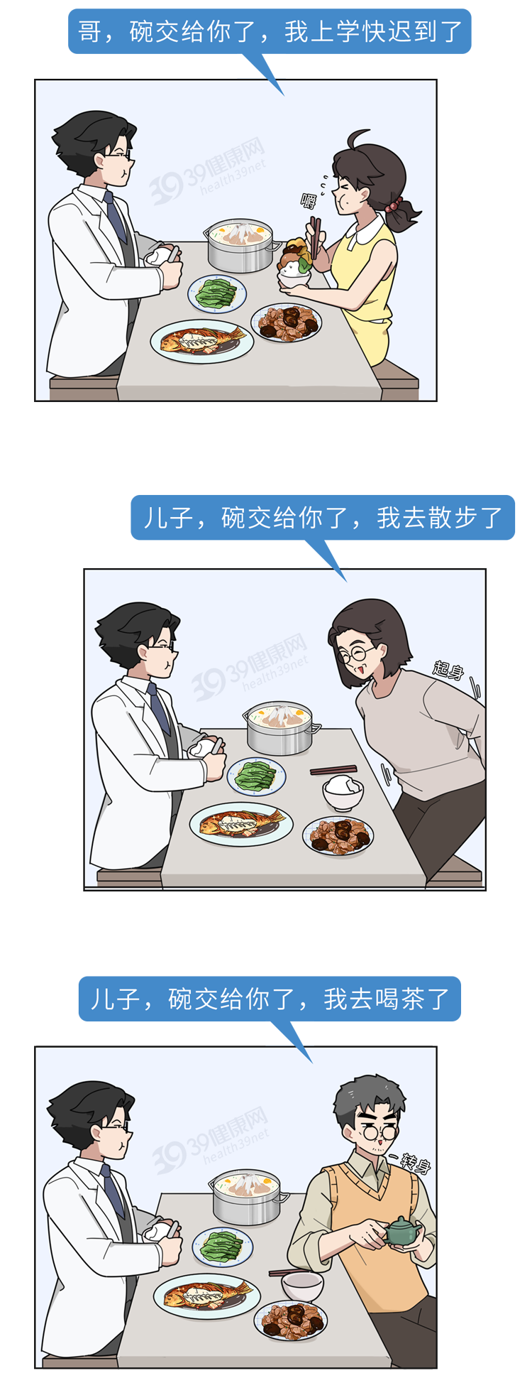 最近九叔吃饭时,发现家里人有很多不健康的吃饭习惯。