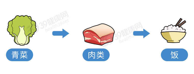 吃饭第一口先吃肉食,就等于在空腹状态下先填入脂肪,越饿吃得就越多。而肉食饱腹感强,胃被脂肪塞满后,膳食纤维、维生素等营养元素就塞不进去了,这就容易造成营养不均衡。