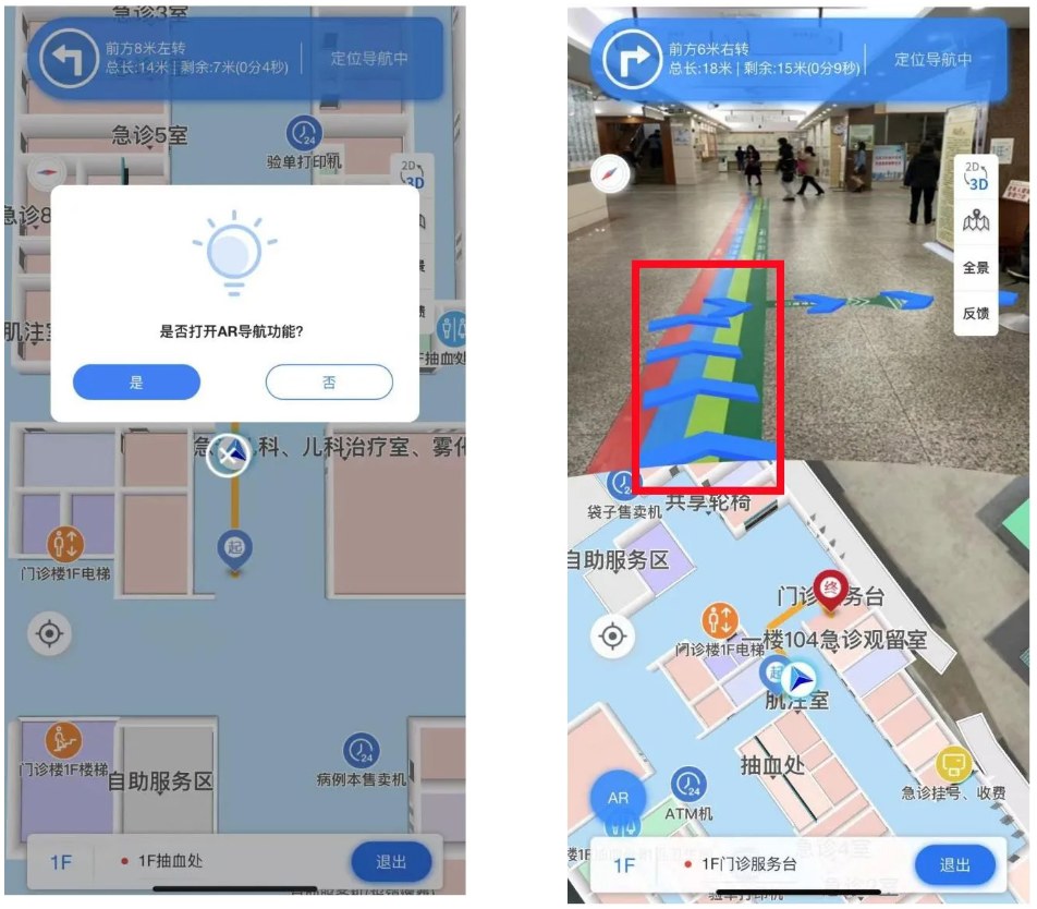 为了让患者更顺利就医,各大医院都在官方APP、微信公众号推出了电子导航服务,点开就能搜索并通过导航指引到达目的地。